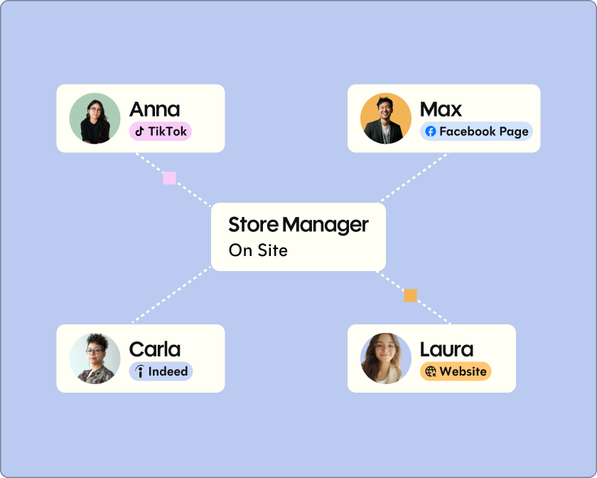 Engage candidates across all channels (social media, job boards, referrals, events and job fairs). Talkpush captures, syncs and records every conversation into a single source of truth, Talkpush and/or your ATS.