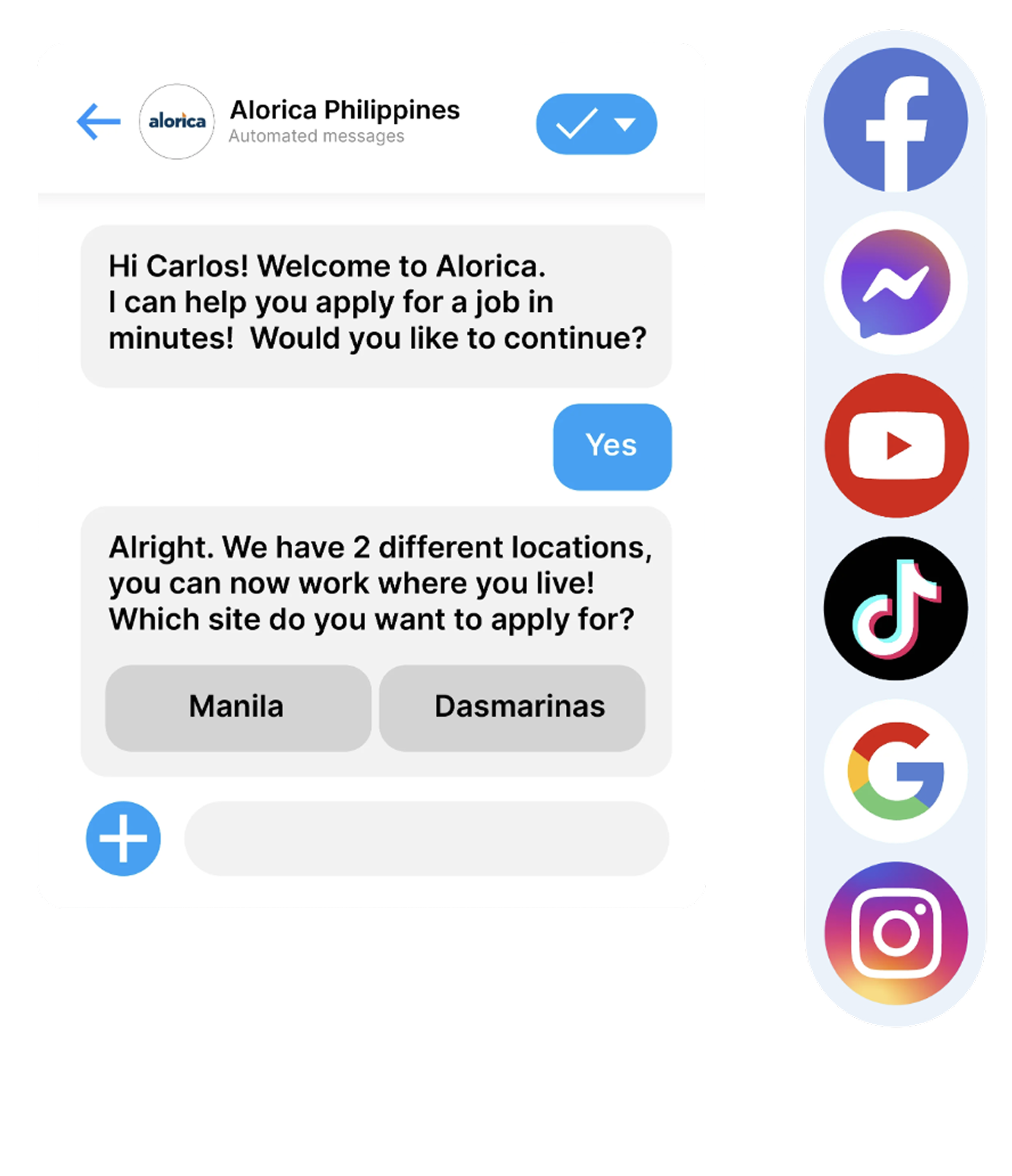 Yes, Talkpush is both a powerful Candidate Relationship Management (CRM) platform and an ATS, designed specifically for high-volume recruitment. It helps you build and nurture relationships with candidates across multiple communication channels, including SMS, WhatsApp, email, and social media platforms with available Conversational AI Recruiters that handle the large majority of the conversations. With Talkpush, you can easily engage, track, and manage large talent pools, optimizing your recruitment workflow from sourcing to hiring.