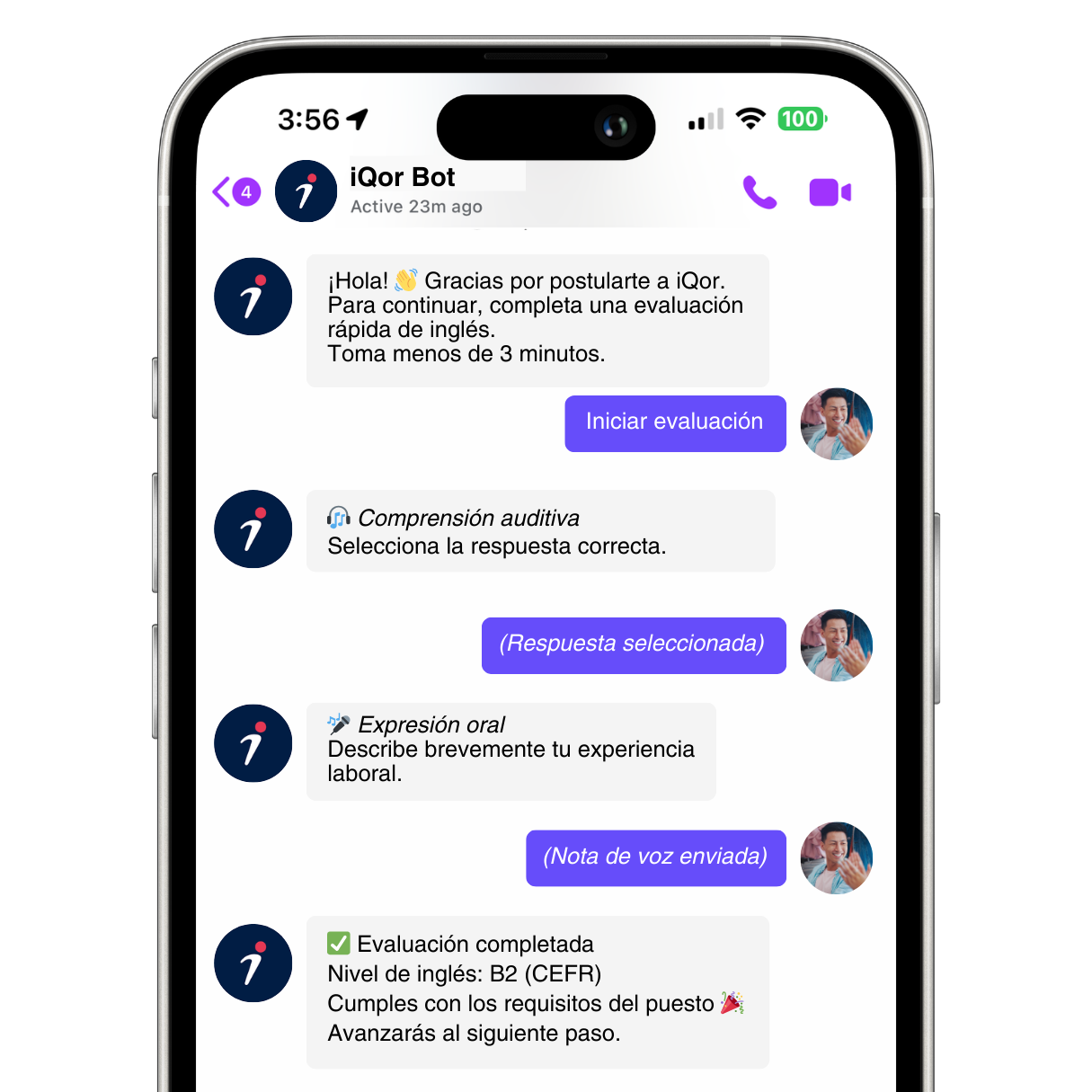 Este desafío se hizo aún más evidente durante los picos de contratación. Múltiples pasos telefónicos, programación de llamadas y seguimientos creaban fricción que ralentizaba la emisión de ofertas y reducía la conversión. A medida que iQor se preparaba para metas de contratación cada vez más agresivas, la empresa necesitaba un método rápido, objetivo y justo para todos los solicitantes.